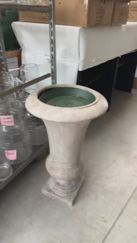 La finitura color pietra e la struttura robusta la rendono perfetta per allestimenti scenografici, giardini, ingressi o eventi eleganti.